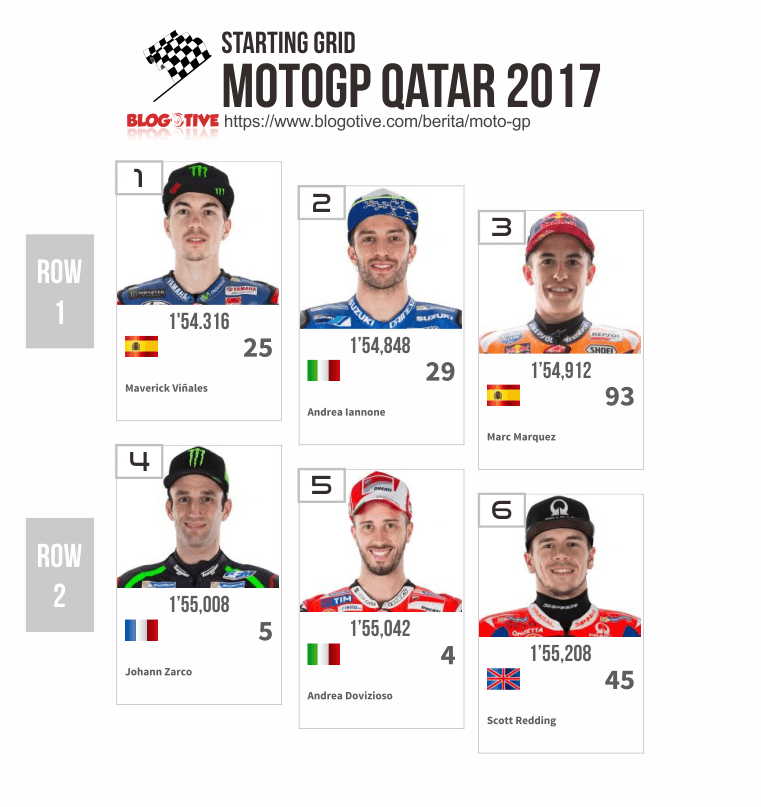 Starting Grid MotoGP Qatar 2017 row 1-2 Oleh Hendri WidanantoDiposting pada 26 Maret 201726 Maret 2017