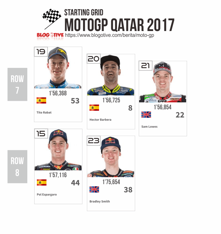 Starting Grid MotoGP Qatar 2017 row 7-8 Oleh Hendri WidanantoDiposting pada 26 Maret 201726 Maret 2017