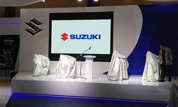 Dalam World Premier New Product ini Suzuki akan memperkenalkan salah satunya, motorsport 150cc, Suzuki GSX-R150. Ada 4 motor yang masih ditutupi kain masdab.. mungkin disana juga ada sang naked Suzuki GSX-S150..