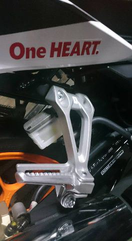 Di gambar kedua disebelah kanan adalah footstep untuk boncenger, di sana dibagian bodi tertulis tagline andalan Honda yakni One HEART, disisi kiri body kemungkinan terdapat tagline AHM yakni Satu HATI.